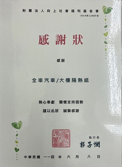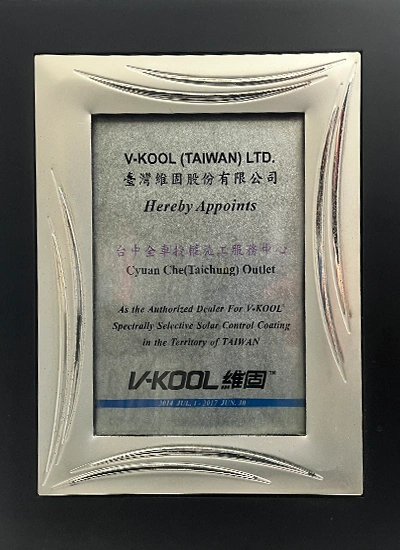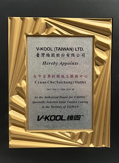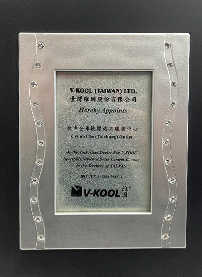 常年獲得V-Kool連續經銷權,獲得多項獎盃殊榮,擁有多項隔熱紙品牌合作V-KOOL、3M、舒熱佳、FSK、Green way、Deno丹龍、Sun Mark桑馬克、Smith、南亞、Stek、JEC等。