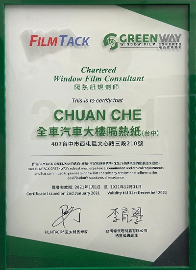 全車隔熱紙創立於民國82年,至今已有逾25年專業施工經驗,服務涵蓋汽車隔熱紙、烤漆保護膜、HUD白光膜及各類建築玻璃隔熱紙。憑藉專業團隊與誠信服務精神,曾受Ferrari、Lamborghini、Mercedes-Benz等車廠指定施工,並以完整售後服務贏得口碑。我們持續以優質技術與親切服務,守護每位顧客的需求與安心。