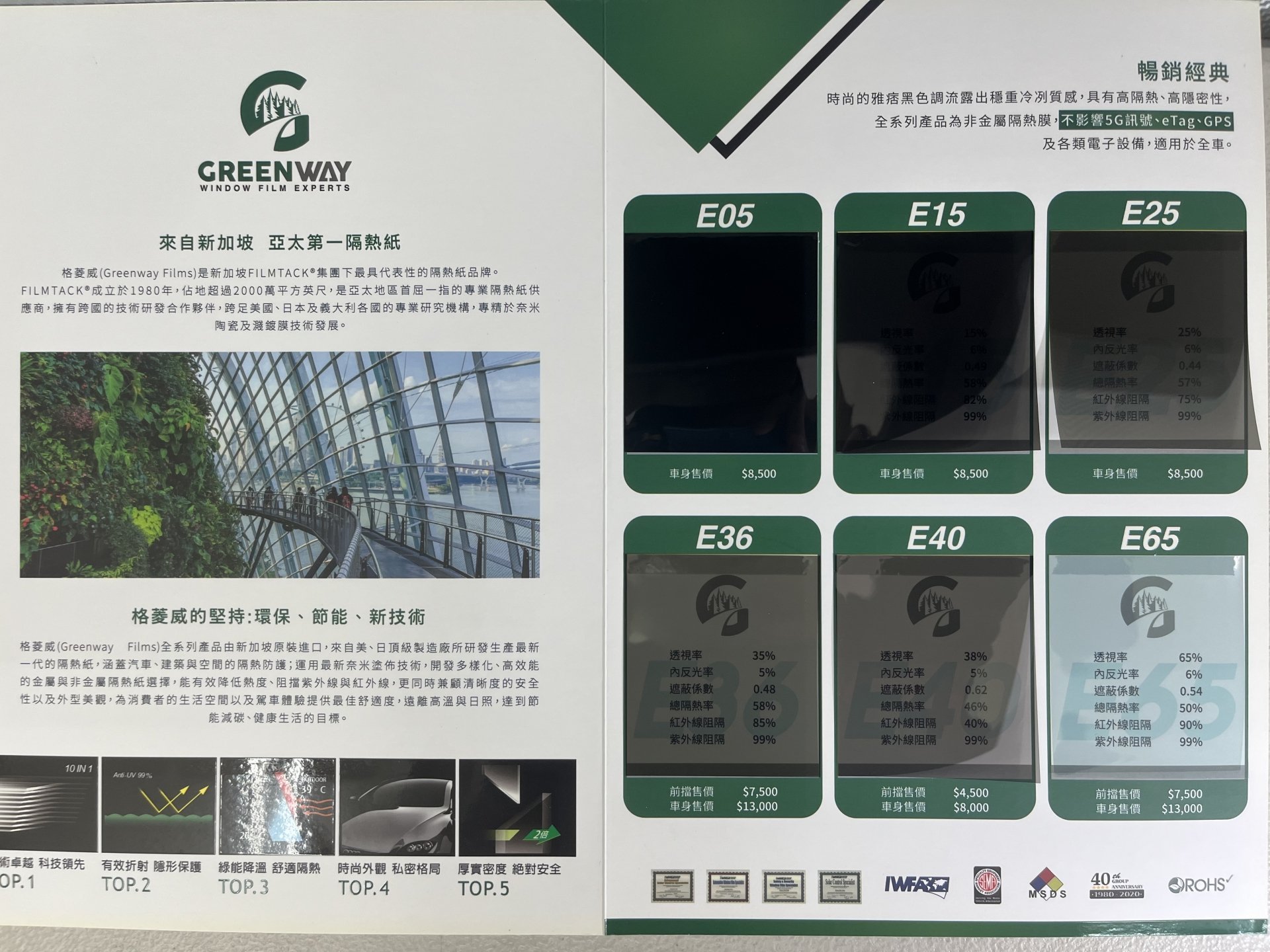 亞太地區首屈一指的專業隔熱紙供應商,擁有跨國的技術研發合作夥伴,跨足美國、日本及義大利各國的專業研究機構,專精於奈米陶瓷及濺鍍膜技術發展。全系列產品是新加坡原裝進口,來自美、日頂級製造廠所研發生產最新一代的隔熱紙,涵蓋了建築與空間、汽車的隔熱防護。運用最新奈米塗佈技術,開發多樣化、高效能的金屬、非金屬隔熱紙選擇,能有效降低熱度、阻擋紫外線與紅外線